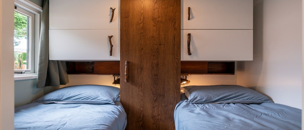 Een vakantieparadijs in het groen. In dit luxe vrijstaande chalet (3,70x10 meter) kan je heerlijk ontspannen. Het is zeer ruim opgezet, licht en prachtig ingericht met veel oog voor detail en harmonie. De aanwezige sfeer is tot in de tuin doorgetrokken. Het chalet beschikt over een woonkamer met airco/verwarming, een gezellige pelletkachel, een heerlijke zithoek, aparte eettafel en een flat screen tv (werkt met google chroomcast, zie gebruiksaanwijzing)